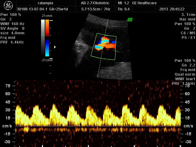Τo υπερηχογράφημα ανάπτυξης - Doppler πραγματοποιείται μεταξύ 32 και 34 εβδομάδων κύησης. Ελέγχεται το βάρος του εμβρύου, η ομοιόμορφη σωματική αύξησή του, η κινητικότητα του εμβρύου, η ποσότητα του αμνιακού υγρού και η θέση του πλακούντα. Διενεργείται ένας αδρός επανέλεγχος της ανατομίας του εμβρύου και δια του έγχρωμου υπερηχογραφήματος Doppler η εκτίμηση της ροής του αίματος στην ομφαλική αρτηρία, στη μέση εγκεφαλική αρτηρία και όταν κρίνεται απαραίτητο και στο φλεβώδη πόρο. Τα αποτελέσματα αυτής της εξέτασης παρέχουν σημαντικές πληροφορίες για τη περαιτέρω πορεία της κύησης.